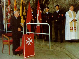 Grandmaster Frŕ Andrew Bertie at the grotto.