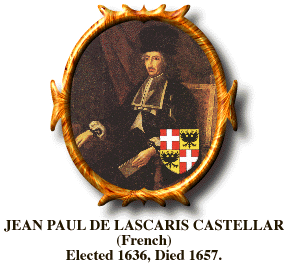 Grand Master Jean Paul Lascaris (1636-57) was a man of firm and strong character. During his period, Spain and France were at war and this created intense hatred between the Knights of the warring nations. His resourcefulness and diplomacy helped to solve the Order's interminable difficulties. He also completed the Floriana fortifications which his predecessor began building after the design of the famous Italian engineer Paolo Floriani.
