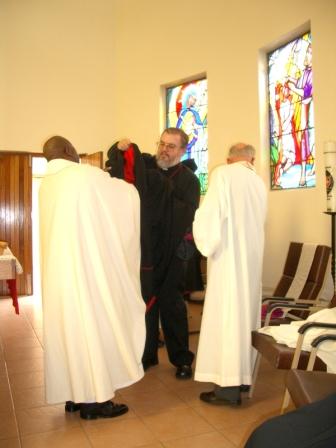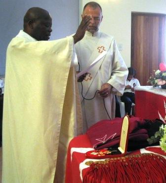 Fr. Ndaba blesses the new vestments (cassock & mozetta) and insignia (cross) of the conventual chaplain ad honorem