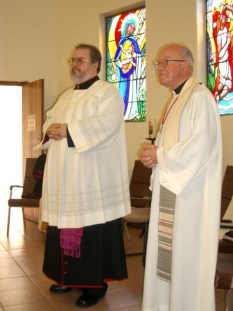 Fr. Gérard, The Abbot of Inkamana Abbey Godfrey Sieber O.S.B., Fr. Michael Meyer O.S.B. genuflecting at the beginning of Holy Mass