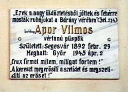 Blessed Vilmos (William) Apor de AltorjaBishop and MartyrMemorial: 23 MayWilliam was born in 1892 to fervent Catholic parents, Baron Gabriel Apor and Countess Fidelia Pálfy in their city of Segesvár, Diocese of Alba Julia, then in Hungary (today Sighișoara in Romania). Blessed William Apor, Bishop and Martyr, was a Conventual Chaplain ad honorem of our Order. Collect: Almighty, ever-living God, (Quoted from the Bishop Vilmos Apor was a conventual chaplain ad honorem of the Sovereign Military Order of Malta. He was born on 29 February 1892 in Segesvár, ordained priest on 24 August 1915, ordained bishop of Györ / Hungary on 24 February 1941. His episcopal motto: "Crux firmat mitem, mitigat fortem". "The Cross strengthens the weak, it curbs the powerful". The beloved bishop was shot on Good Friday 1945 by a drunken Red Army soldier, as he protected women who had taken refuge in his residence. The women were saved, but the bishop died of his wounds on Easter Monday, 2 April 1945. His last words. "The sacrifice was worthwile". The proceedings for the Beatification of Bishop Apor were begun in 1947 with the nomination of a court, and concluded on 7 July 1997 in Rome, when the Holy See decreed his death as a martyr. He was beatified on 9 November 1997 by Pope John Paul II The picture is taken from: RIVISTA INTERNAZIONALE SOVRANO MILITARE ORDINE OSPEDALIERO DI SAN GIOVANNI DI GERUSALEMME, DI RODI E DI MALTA, December 1997 VATICAN (CWN) -- On Sunday, November 9, Pope John Paul II presided at the beatification of three people: Vilmos Apor, Giovanni Battista Scalabrini, and Maria Vicenta de Sainte-Dorothee Chavez Orozco. During his public audience following the Angelus prayer, the Holy Father invoked the example of the three newly beatified Catholics, and called upon Catholics everywhere to "proclaim the social Gospel" of the Church, giving full voice to the call for service to God and to neighbor. Vilmos Apor (1892- 1945) was a Hungarian bishop who earned a special reputation for his service to the poor, especially during the months of hardship that came with World War II. He also spoke out against persecution, and as Pope John Paul II noted, "He was not fearful about raising his voice, in accord with evangelical principles, to denounce injustice and abuse against minorities, especially against the Jewish community." Named bishop of Gyor by Pope Pius XII in 1941, Bishop Apor chose as his motto: "The Cross strengthens the weak and makes the strong gentle." During air raids, he was known for opening his own house to those whose homes had been destroyed. On Holy Saturday, 1945, when Russian troops entering the city came to his episcopal residence and demanded that 100 women be taken from there to their own barracks, he flatly refused. A Russian officer shot and wounded him, and he died three days later. The president of Hungary, Arpad Goncz, was in Rome for the beatification ceremonies, and met privately with the Pope on Saturday. Tallozo Az Uj Ember 1997. julius 20-i szamabol VARHATO A BOLDOGGA AVATAS Apor Vilmos vertanusagat elismero dekretum Julius 7-en delelott a Vatikanban, az Apostoli Palota Konzisztorium termeben tartott unnepseg soran - II. Janos Pal pa'pa jelenleteben - a szentteavatasi kongregacio kihirdette az Apor Vilmos gyori puspok vertanusagat elismero dekretumot, ezzel tehat - otvenket evvel martirhalala utan - megnyilt az ut a hoslelku fopasztor boldogga avatasa fele. Az unnepi szertartasra elorelathatolag ez ev november 9-en, vasarnap kerul majd sor. Apor Vilmos 1892. februar 29-en szuletett Segesvaron, es 1945. aprilis 2-an hunyt el a gyori puspokvarban, ahol egy szovjet katona ralott, mikozben a fopap a varba menekult hiveit vedelmezte. Tavaly szeptemberben, gyori lelkipasztori latogatasa alkalmaval a papa felkereste Apor Vilmos sirjat, es imadkozott a szenteletu puspok foldi maradvanyai elott. A julius 7-en, a pa'pa jelenleteben tartott szertartason jelen volt Veres Andras prelatus, a Pa'pai Magyar Intezet rektora, Apor Vilmos boldogga avatasi eljarasanak posztulatora. Ima Apor Vilmos boldogga avatasaert: Mindenhato orok Isten, Teremtonk es Megvaltonk, hallgasd meg buzgo imankat, es reszesitsd a mennyei dicsosegben a te huseges szolgadat, Apor Vilmost, mert a Te osvenyeden jart, tundoklo hite es nemes szivenek szeretete vezette tetteit. Jo pasztora volt a rabizott nyajnak, a raszorulokat felkarolta, segitette az uldozotteket, vegul eletet adta a noi tisztasag vedelmeben. Mutasd meg hat csodas irgalmadat, hogy elnyerhesse szolgad a boldogok egi koronajat. Amen. quoted from: NEMZET Magyar Internet Világlap 1997 július 25 Den salige biskop Vilmos Apor kjempet mot urett og ble en martyr for sitt folk. Han ble født i ungarske Segesvar i 1892, og ble presteviet som sekularprest for det ungarske bispedømmet Nagyvarad (nå i Romania: Oradea Mare) i 1915. Pave Pius XII utnevnta ham til biskop av Györ i 1941. Han brukte alle sine krefter til å lindre de lidendes sorger og smerter. Da tysk-inspirerte raselover ble introdusert i Ungarn, forsvarte han ofrene for uretten og fom med sterke fordømmelser overfor myndighetene, i en slik grad at hans egen sikkerhet var truet. Mange ofre for det intense bombardement søkte også hjelp og tilflukt hos biskopen. Da fronten nærmet seg Györ, lot han flyktninger og hjemløse overta bispepalasset. Da han hørte hvilke farer som truet kvinnene, erklærte han at han ville forsvare dem med sitt eget liv. Det fikk han demonstrere da fulle russisk soldater ankom langfredag 1941 og krevde at de hundre kvinner og jenter som var i bisperesidensens kjeller skulle bli med til russertes forlegning. Biskopen avviste dette kategorisk. En russisk offiser forsøkte å trenge seg inn i kjelleren og truet biskopen med en pistol, biskopen forsøkte å trenge ham tilbake, hvorpå offiseren skjøt ham i pannen, hånden og magen. Russerne ble selv skremt av det de hadde gjort, og flyktet. Biskopen, som fremdeles var i live, ble bragt til et sykehus. Han var enn